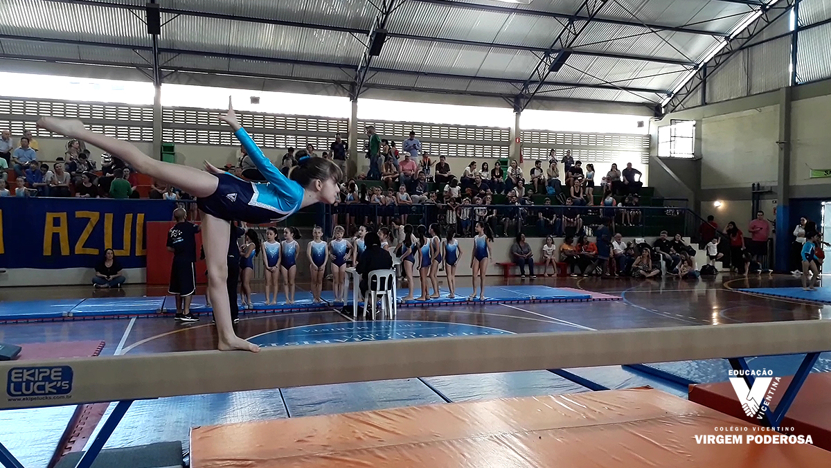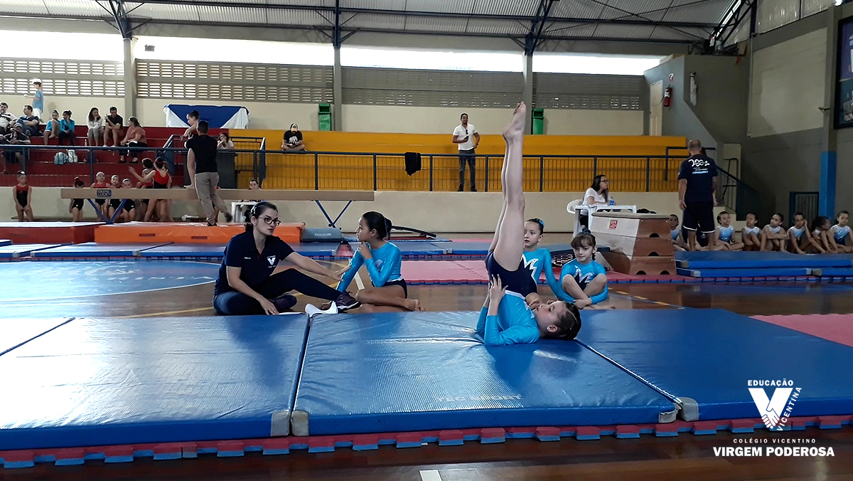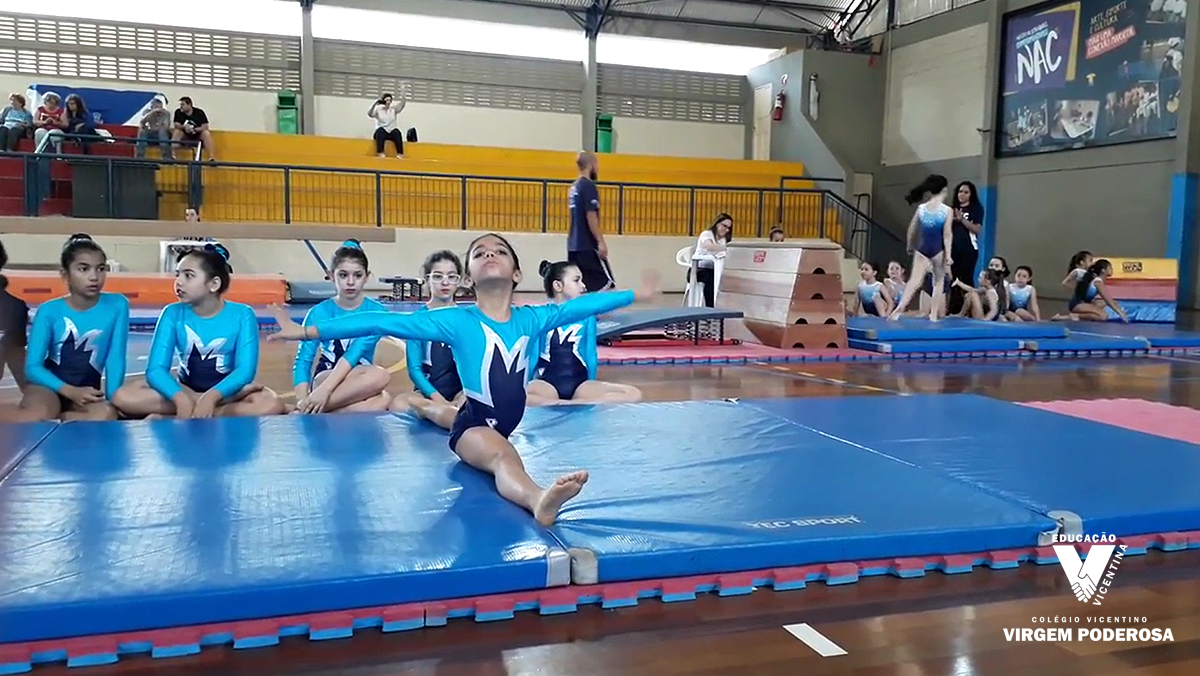 Isadora, aluna do 8º ano, que sofreu uma queda no aparelho salto, foi motivada com uma mensagem da Flávia Saraiva, medalhista em Copas do Mundo e em Pan-Americanos, e embaixadora da modalidade no evento.